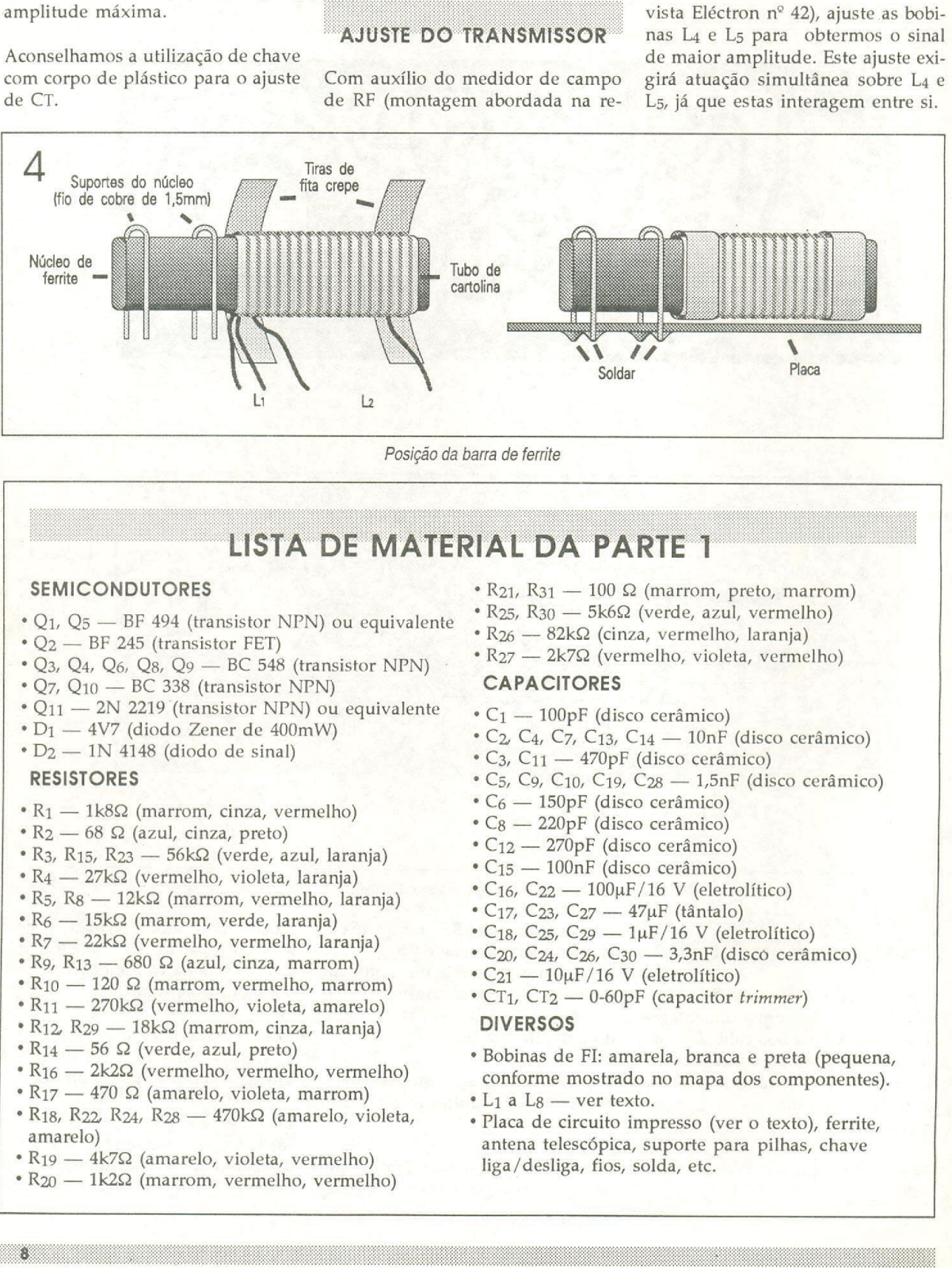 Como confeccionar a bobina receptora de antena, lista de peças.